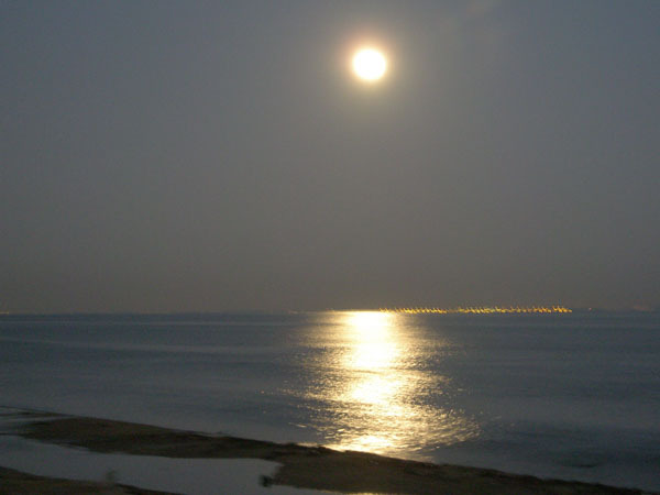 月のそばで、見慣れない光輝く星が辺りを照らしました。
